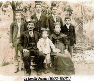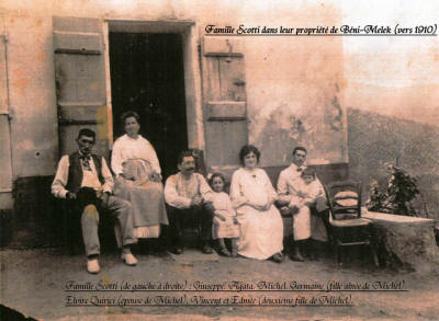 Giuseppe SCOTTI arrive en Algérie à Philippeville, en 1880 avec l’un des frères (Michele) de 10 ans son aîné, sa femme Agata et son fils Michele. Ils habitent la rue du 3ème Bataillon d’Afrique. En 1885, sur les coteaux du Beni-Melek, Giuseppe