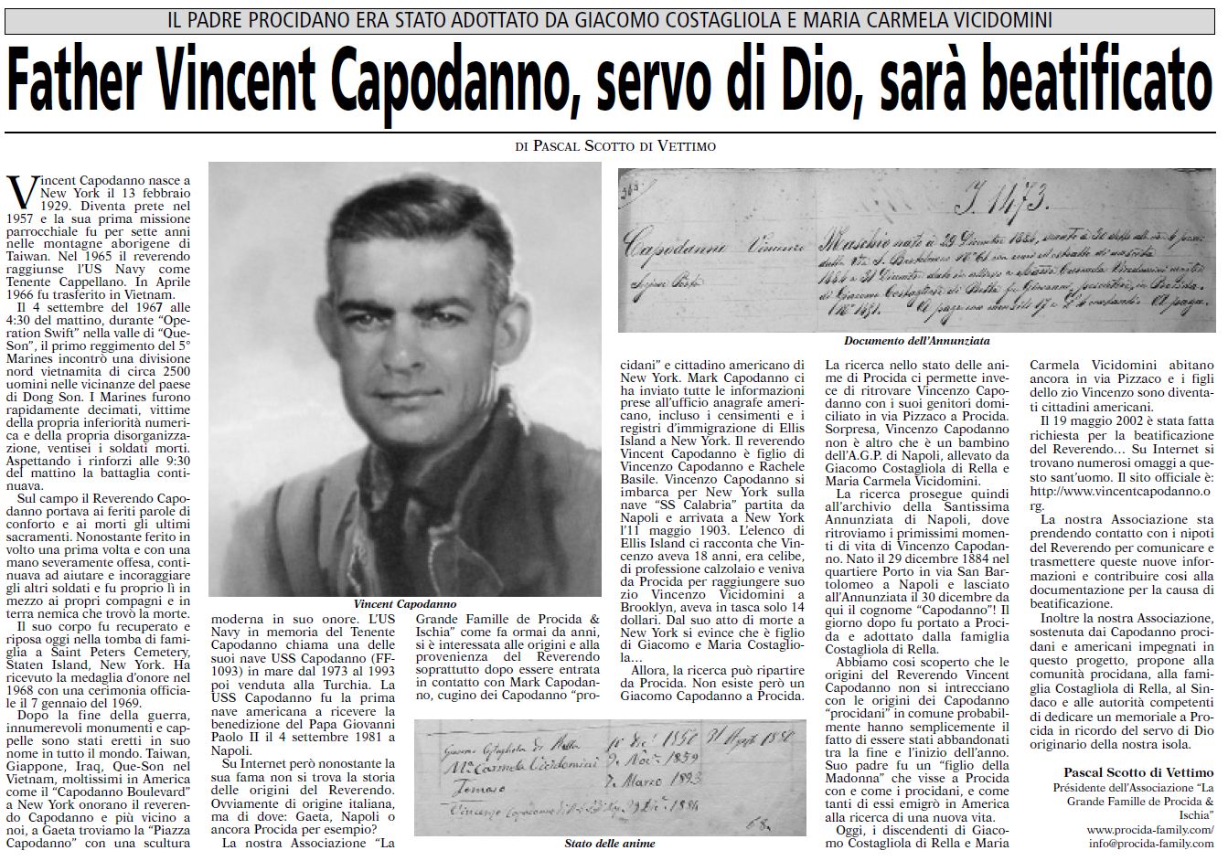 Father Vincent Capodanno, figlio di un procidano, sarà fatto santo