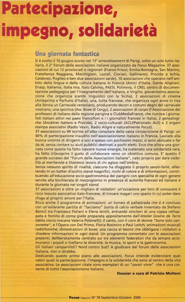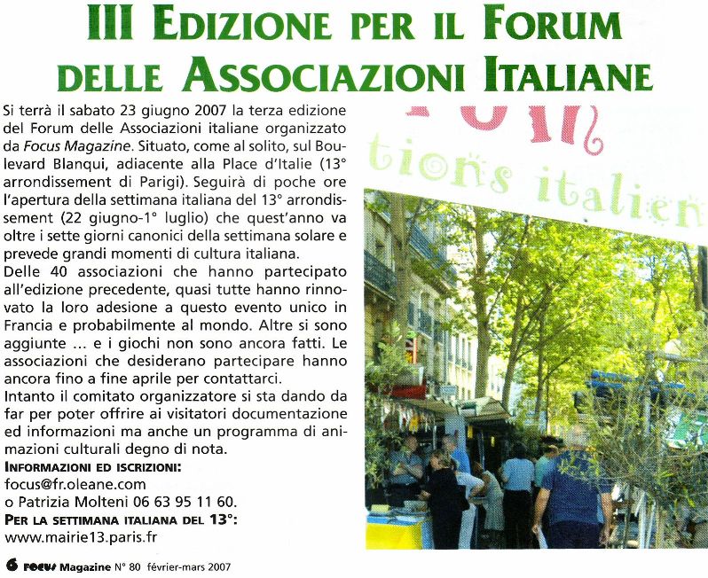 La 7a edizione della Settimana Italiana a Parigi (Forum delle associazioni)