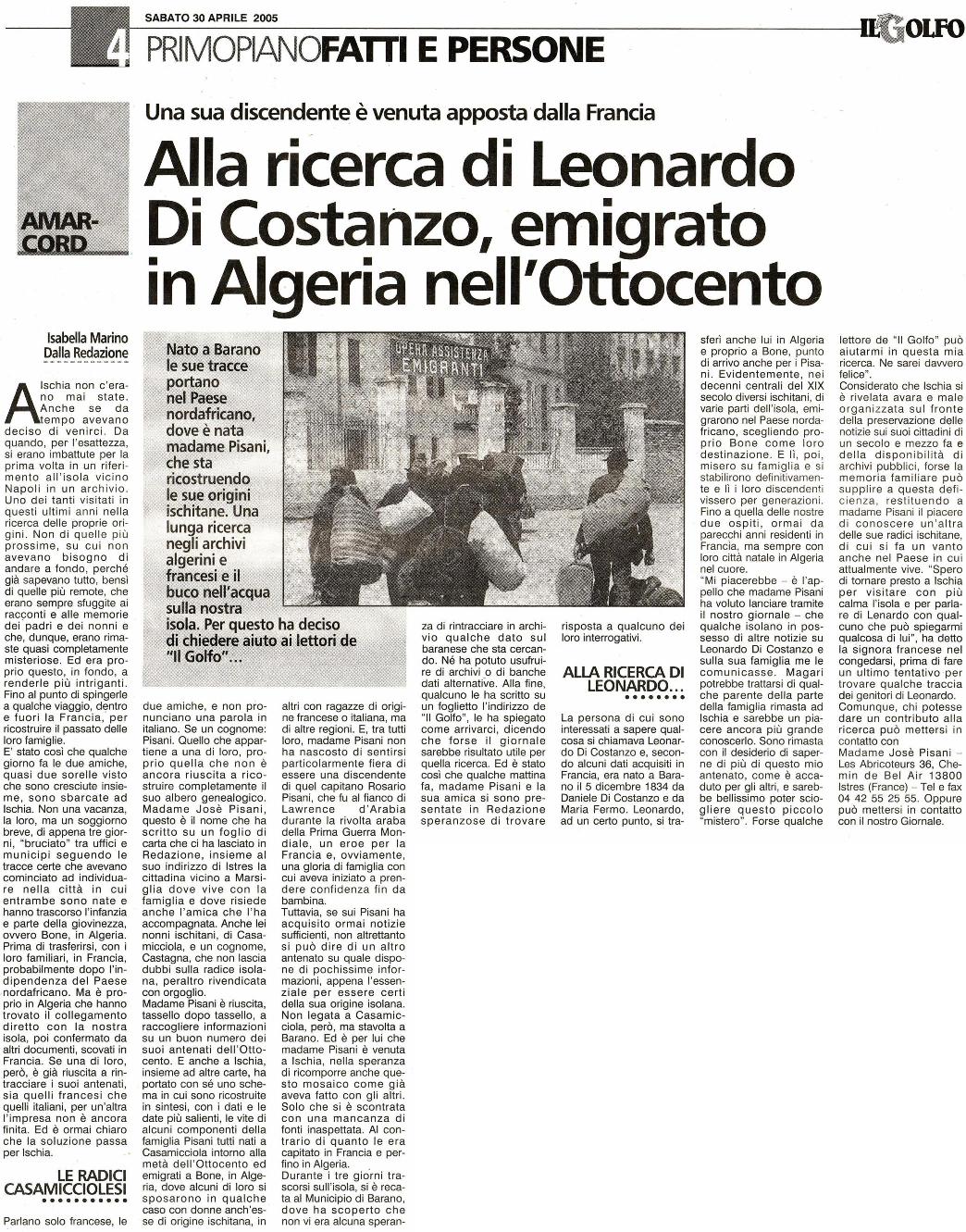 Alla ricerca di Leonardo Di Costanzo, emigrato in Algeria nell'Ottocento